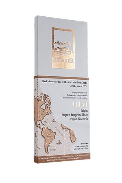 Étcsokoládé kakaóbab törettel Chuao-ból származó kakaóbabból Chuao‑ból származó pörkölt kakaóbab törettel kellemesen ropogós textúrát kölcsönzünk a csokoládé táblának, miközben csak a Chuao ízekre koncentrálhatunk.