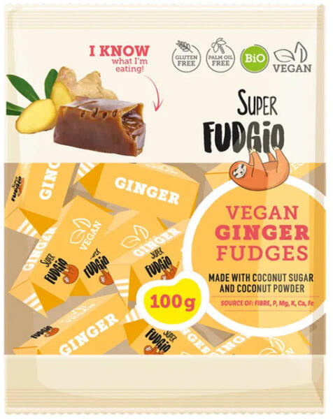 Super fudgio bio vegán karamella gyömbéres 100 g Tapasztald meg az egyedi és fűszeres csavart a bio tejmentes gyömbéres fudge-unkkal. Ezek a legfinomabb alapanyagokból készült finomságok a tej helyett a kókuszpor gazdagságát és a gyömbér meleg, aromás jegyeit ötvözik. Kóstold meg tartósítószermentes fudge-aink természetes ízét és krémes állagát, amely vegánok és gy