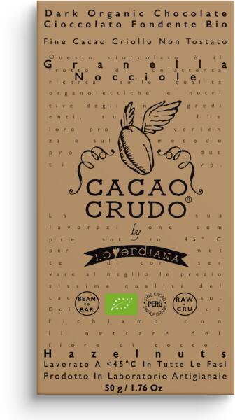 A pirítatlan és darált "Tonda Gentile Romana" (18%) mogyoró "nugát" hatást kelt, finom aromájuk pedig tökéletesen keveredik a Criollo kakaó ízével. A puha és ropogós részek közötti egyensúly ideális csokoládé rágáshoz. A rengeteg mogyoró garantálja az olajsav és más értékes tápanyagok magas százalékát.