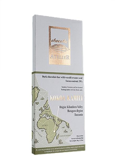 Étcsokoládé Kokoa Kamili kakaóbabból, wasabis szezámmaggal Más csokoládéval el sem tudjuk képzelni a wasabi ízesítésű szezámmagot, mint a Kokoa Kamilivel. Az egyik legsokoldalúbb csokoládéval párosítva mindhárom összetevő egyenrangú félként vesz részt a gasztronómiai élményben.