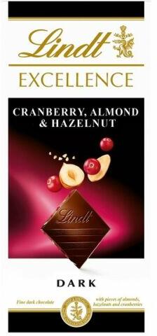 Lindt Excellence finom étcsokoládé vörösáfonyával, mandulával és mogyoróval 100g