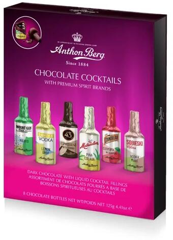 Anthon Berg Koktéllal Töltött Étcsokoládé Üvegek 125g (8db-os)
