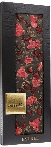 A csokoládé-alapanyag a francia Valrhona vállalattól érkezik, melynek mindegyike a prémium kategóriát képviselô csokoládék legjava. A csokoládék 100% kakaóvajjal készülnek, illetve eredeti bourbon vanliát tartalmaznak. Az étcsokoládé 65.1% kakaó tartalmú, az equadori Arriba és ázsiai kakaóbabok nemes keveréke (Fortina Finest Selection). A Cabernet Franc-on található: a
