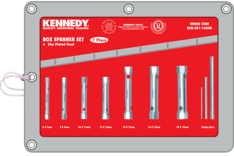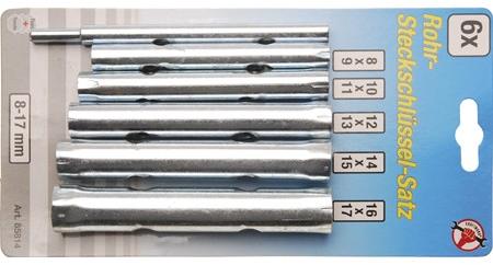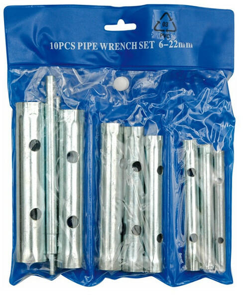 Jó minőségű, horganyzott acélcsőből gyártva. Hajtószárral szállítva. Összetétel: 6 x 7, 8 x 9, 10 x 11, 12 x 13, 14 x 15, 16 x 17 és 18 x 19 mm. Súly: 600 g