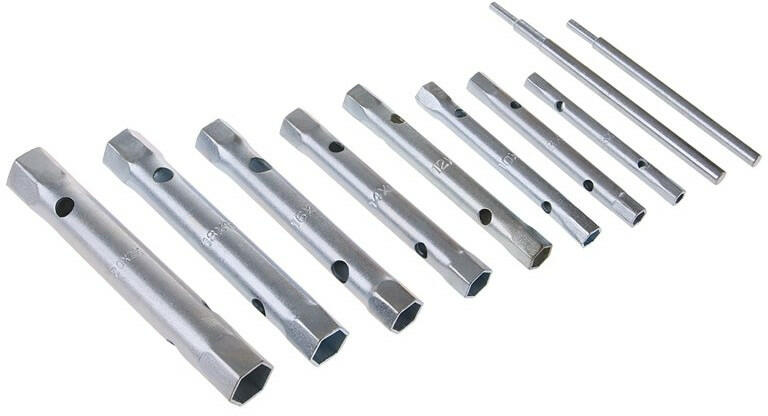 A készlet tartalma: 8 db csőkulcs 6-7,8-9,10-11,12-13,14-15,16-17,18-19,21 -22 mm 2 db hajtóvas
