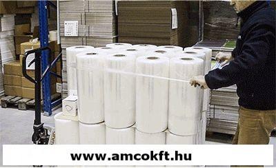 Automata és félautomata gépekhez alkalmazható. Kiválóan használható raklapra helyezett csomagok és egyéb tárgyak fóliázására/rögzítésére, ezzel is extra védelmet nyújtva a szennyeződések, sérülések és egyéb külső behatások ellen. Szín: átlátszó Szélesség: 500 mm Hosszúság: 1085 fm Vastagság: 23 mic Súly: 14 kg/tekercs A cséve belső átmérője 76 mm.