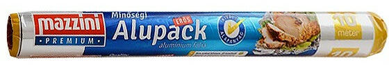 Alufólia MAZZINI Premium erős 10m A forgalomban kapható legtöbb háztartási alufóliánál vastagabb és erősebb alapanyagból készült. Ideális sütéshez, főzéshez, grillezéshez, pároláshoz és csomagolásra. Elegáns, figyelemfelkeltő, kategóriájában új, vezető csomagolás. Ez hűen tükrözi a termék kiemelkedő minőségét, mely a vásárló magas igényeit is kielégíti