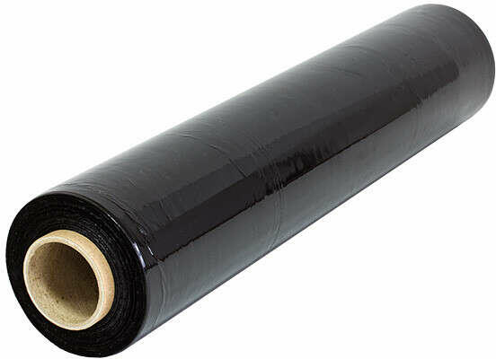 Rakományok rögzítésére, csomagolására kiválóan alkalmas, fekete, tekercselt, 23 micron vastagságú kézi csomagoló fólia, mely megóvja az árut a nedvességtől és kisebb sérülésektől. Szélesség : kb 50 cm Vastagság: 23my , Hossz: 136m, Cséve méret:80 dkg