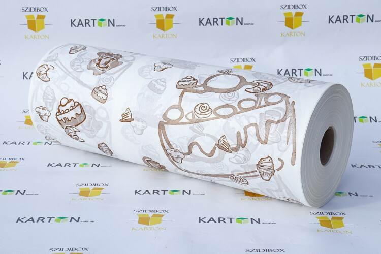 Cukrászati termékek csomagolásához, szállításához alkalmas, zsírálló, mintás csomagoló tekercs. Szélessége: 50cm Egész tekercs súlya: 10kg Egész tekercs hossza kb. 660m. 1 kg tekercs hossza kb. 66m. A képen egy egész tekercs (10 kg) látható. A feltüntetett ár 1kg-ra értendő. Minimum rendelhető mennyiség: 1 kg A feltüntetett ár tartalmazza a kiterjesztett gyártói fel