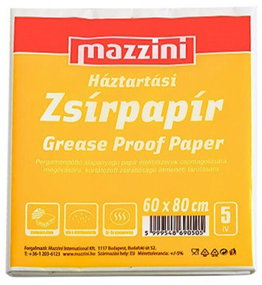 Zsírpapír MAZZINI 60x80cm 5 íves Élelmiszerek letakarására, csomagolására kiválóan alkalmas, zsírálló