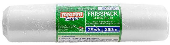 Frisspack MAZZINI Gasztro 29cm x 300m Az élelmiszeripar területén ideálisak ételek, élelmiszerek aromazáró lefedésére, hidegkonyhai készítmények letakarására, habtálcák csomagolására valamint tárolására, frissentartására, fagyasztására.