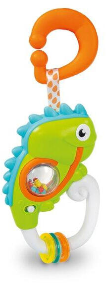 Remek csörgő, amely szórakoztatja gyermeket. A rázogatás játékos dallamokat és hangokat produkál, míg a színes golyók és medálok a tapintás érzékelést fejlesztik és lekötik a baba figyelmét. Tartalmaz egy praktikus tapadókorongot a csörgő szilárd elhelyezéséhez az asztalon vagy az etetőszéken étkezés közben. A játék elektronikus fényekkel és hangokkal is szórak