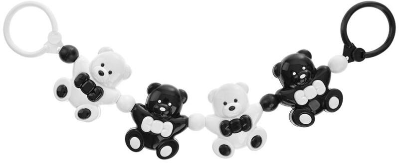 Akuku csörgő - babakocsira Maci fekete-fehé Az akuku csörgő vidám hangjai kellemessé teszik a sétát. Az erős fekete-fehér színek segítenek a babáknak fejleszteni a figyelem összpontosítási és koncentrációs képességét. A lekerekített formák biztonságosak a baba számára. Babakocsira vagy kiságyra is egyaránt rögzíthető. A legjobb minőségű anyagokból készült, bi