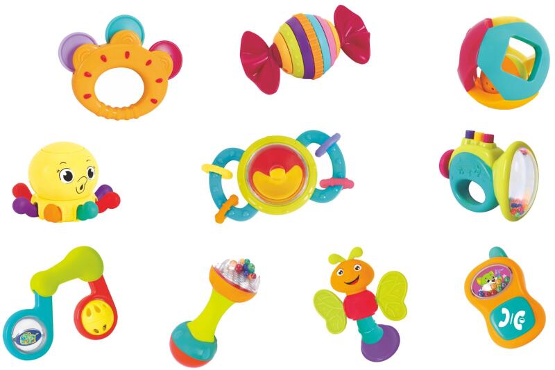 M-Toys Csörgő készlet 6 darab A különleges formák és az élénk színek arra ösztönzik a gyermeket, hogy játsszon, ezáltal ösztönözve az egyéni fejlődést; A kicsi fokozatosan megismeri a hangok és a színek világát; Biztonságos és tartós anyagokból készültek A termék képei bemutó jellegűek, egyes apró elemek színe változhat; 3 hónapos kortól ajánlott; A csomag m