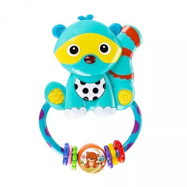 Ez a mosómedve alakú, zenélő csörgő szórakoztató és fejlesztő játék a kicsik számára. A vidám dallamoknak, élénk színeinek és a hátulján található tükör segítségével felkelti a kicsik figyelmét, fejleszti a szem-kéz koordinációt. Rágcsálható és forgatható részeivel a játék leköti a kisebb babák figyelmét is. A termék jellemzői:- Vidám, mosómedve alak