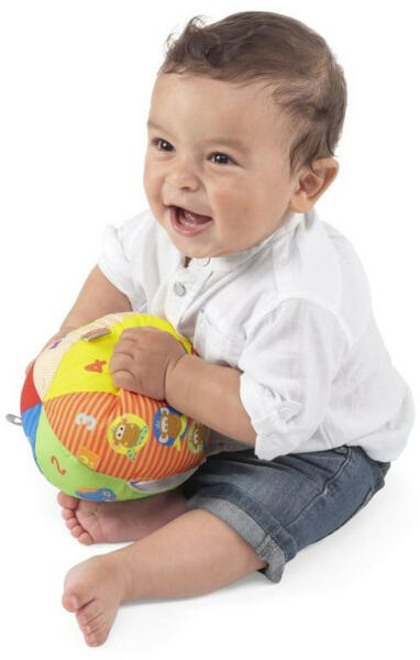 Chicco puha, zenélő bébilabda, 3h + Puha textilből készült zenélő labda, különböző textilanyagokból. Rázzuk vagy gurítjuk, a labda zenél, ha van benne elem. Fejleszti a tapintó észlelést és koordinációs készséget, valamint a zenei érzéket. Javasolt életkor: 3 hónapos kortól kb. 3 éves korig. 2db AAA 1,5V elemmel működik (külön kell megvásárolni).