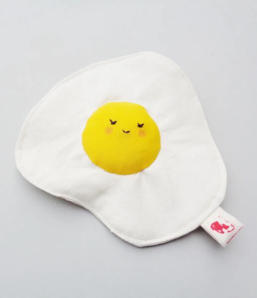 Tükörtojást ábrázoló, kézzel készült, csörgő-zörgő textil babajáték. CE jelzéssel Életkor: 0 hónapos kortól Anyag: 100% Öko tex pamutvászon, Organic Velvet, Növényi alapú selyemszitanyomás, Újrahasznosított poliészter töltet, csörgő anyag Mérete: 17x17 cm Mosás, kíméletes, 30 fokon. Szárítógépben nem szárítható.