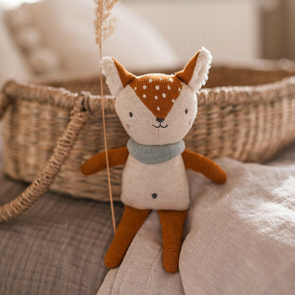 A kedves plüss baba csörgő tökéletesen illeszkedik a kicsi kezekbe. A játék fejleszti a babák finommotorikus készségeit, leköti figyelmüket. Puha anyagának köszönhetően kiváló alvótárs. Az őzgida csörgő papír dobozban érkezik. Kedves ajándék már 0 éves kortól.