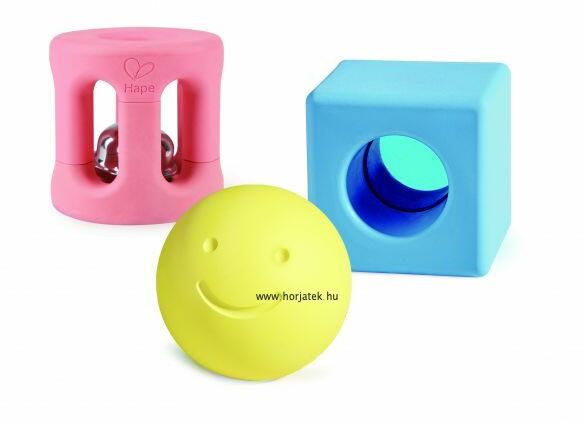 Ezeket a lágy, puha kis csörgőket a Hape szakértői úgy tervezték meg, hogy megfelelően illeszkedjen a csöppségek kezébe. Segíti a gyermek kéz-, szem koordinációs képességét, illetve miközben rázza, a kicsi hallását is fejleszti, de még akár rágókaként is használható. A készletben 3 játék található:A hengerben egy kis fém csörgő található. A kockában színes
