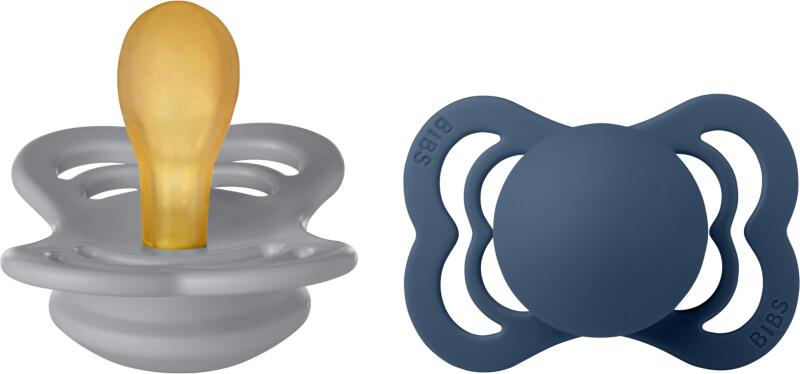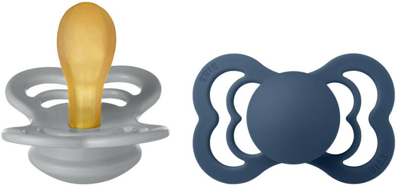 A csomag két megegyező méretű BIBS Supreme cumit tartalmazdelfin és acélkék színben. A BIBS Supreme cumit azoknak a babáknak tervezték, akik a lapos cumifejet szeretik. A Supreme lapos és szimmetrikus cumifeje lágyan fekszik a babák ínyére, nem nyomja azt, ezzel hozzájárul az egészséges fogak és állkapocs fejlődéséhez. A szimmetrikus formának köszönhetően a baba mindig