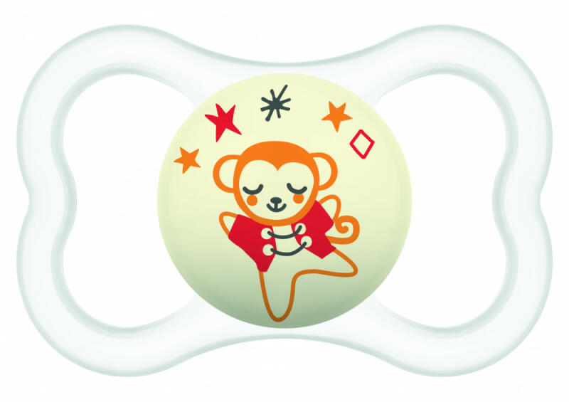 A gomb világít a sötétben – könnyű megtalálni Extra levegőáramlás – különösen bőrbarát Az innovatív dizájn láttatni engedi a baba mosolyát Ortodontikus Megnyugtatja és megvigasztalja a babát Praktikus sterilizáló- és szállítódobozban szállítjuk, így kényelmesen és időtakarékosan sterilizálható a mikrohullámú sütőben 1. PAJZS Nagyméretű levegőnyíláso