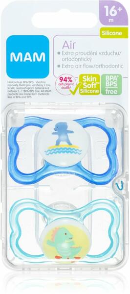 MAM Air 16m+, 2 db, Cumik gyermekeknek, Próbálja ki ezt az évek során bevált módszert a kisbaba megnyugtatására! A MAM Air 16m+ egyetlen szempillantás alatt nyújt biztonságérzetet az Ön csemetéjének. Ezért hamarosan a kisbabával töltött minden egyes nap fontos és hasznos részévé válik. Tulajdonságok: nagyon jól légteleníthető puha cumirész egyszerűen rögzíthető a