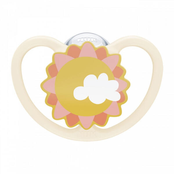 Baba szilikon cumi NUK Space Disney Mickey Mouse 1/doboz 6-18 hónapos babák számára. Aranyos állatkás motívummal díszítve. Nagyon minőségi műanyagból és szilikonból készült. Az áttetsző szilikon könnyen tisztítható és rendkívül hőálló. Nem tartalmaz káros anyagokat, forralható, szagtalan, áttetsző és sima felülettel rendelkezik. A csomagolás cumitároló dobozt i