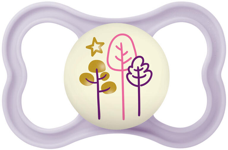 A gomb világít a sötétben – könnyű megtalálni Extra levegőáramlás – különösen bőrbarát Az innovatív dizájn láttatni engedi a baba mosolyát Ortodontikus Megnyugtatja és megvigasztalja a babát Szimmetrikus, vékony és állkapocsbarát teszt MAM SkinSoft szilikoncumi vagy természetes gumiból készült cumi formájában kapható Praktikus sterilizáló- és szállítódoboz