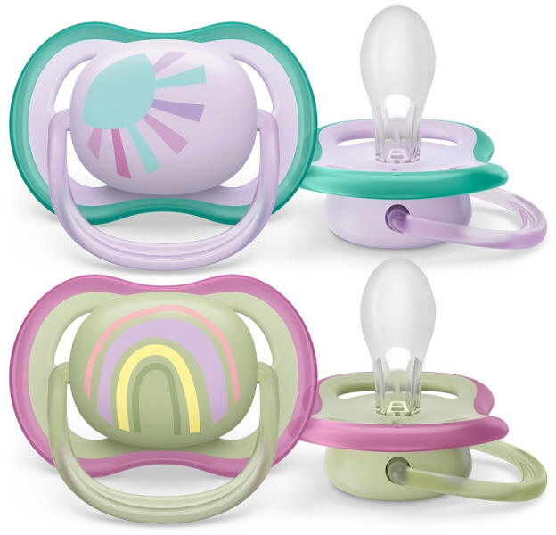Philips AVENT SCF085/59 Játszócumi Ultra air mentás 0-6hó lányos (szivárvány), 2db Hagyja a baba bőrét lélegezni. Extra nagy levegőnyílások a kényelmesebb megnyugtatás érdekében. A levegő kellemességével biztosít megnyugvást. A Philips Avent ultra air cumi extra nagy levegőnyílásokkal rendelkezik, így a baba bőre száraz marad. Különféle színekben és kivitelekben ka
