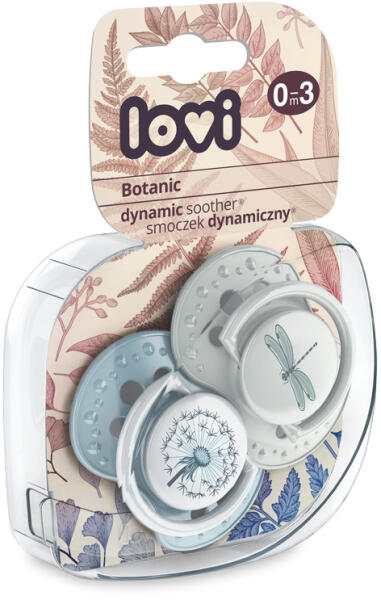 Lovi Dinamikus nyugtató cumi 2db (0-3 hónap) Botanic Lovi dinamikus nyugtató cumi, amely a szakértők által lett kifejlesztve a természetes szopóreflex védelmére. Szimmetrikus alakja van, amely hasonlít a mellbimbó alakjára. Egyedi dinamikus szerkezete heterogén szilikon rétegekből áll, amelynek köszönhetően természetes ritmusban alkalmazkodik a szíváshoz. A LOVI Szilikon Din