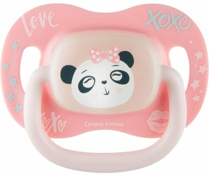 A LOVI® dinamikus cumikat neurológusokkal együttműködve fejlesztették ki. Egyedi kialakítású, nem egyenletes szilikonrétegekkel és szimmetrikus formával, amelyet az anyai mellbimbó ihletett. A modern formatervezést a sötétben világító fogantyú hangsúlyozza. A csomag 2 db cumit tartalmaz, bájos mintákkal. Lovi Dinamikus nyugtató cumi Night&Day 0-3 hó, 2 db (lány) A LOV