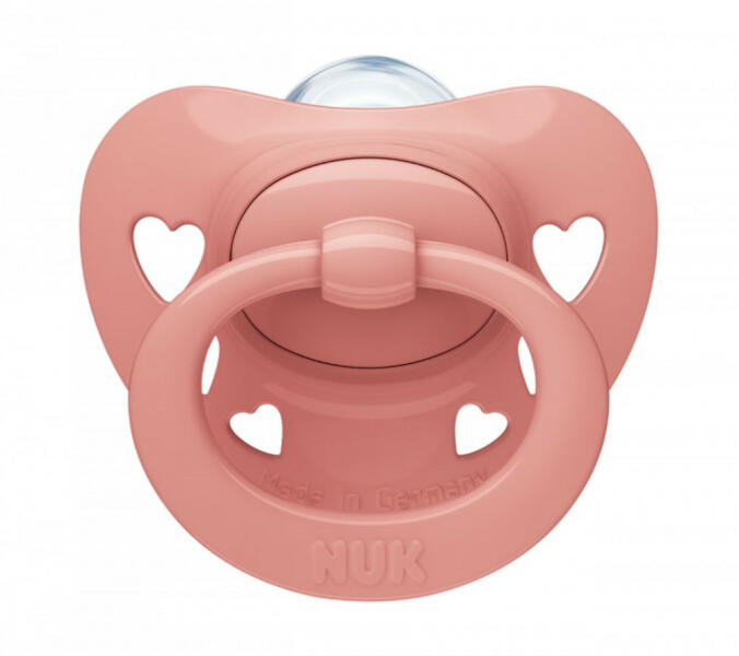 Baba cumi NUK Signature 0-6 hónapos babák számára. A cumi szimmetrikus, amely tekintettel van a szájpadlás, a fogak és az íny természetes fejlődésére. Nagyon minőségi műanyag és szilikonból készült. Szagtalan és könnyen tisztítható. Nem tartalmaz BPA-t. Minden NUK cumi rendszeresen tesztelve és ellenőrizve van a független intézetekkel. A csomagolás 1 darabot tartalmaz.