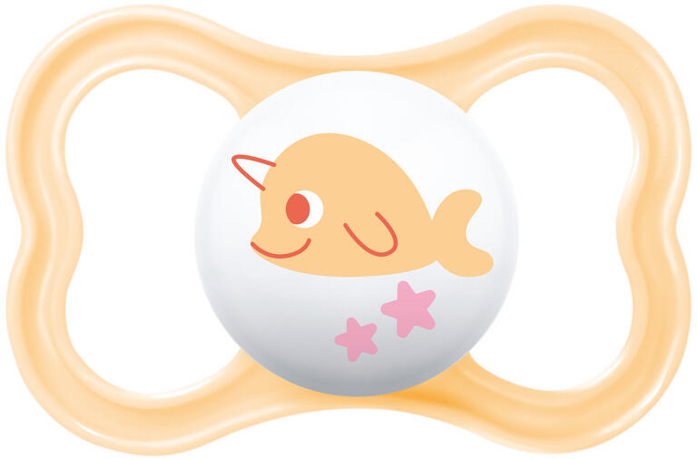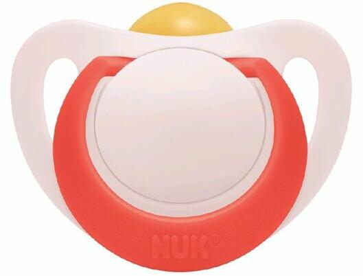 NUK Star cumi – nyugtat, mint egyik más. Latex ortodontikus cumi, amely megfelelő a állkapocs helyes fejlődéséhez, kíméletes a szoptatás váltásához és a cumiztatáshoz. 6–18 hónapos csecsemők számára ajánlott. A NUK Star cumi a baba szájában igazán puha. A cumi felső oldalán található különösen puha zóna (ahol a latex réteg vékonyabb) még kényelmesebben simul a