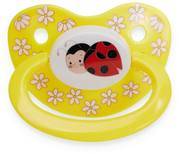 Rearz Ladybug sárga színű cumi. A cumik szilikon anyagból vannak. Átmérőjük 3cm, hosszúságuk 5cm. A cumik műanyag részének szélessége 6,6cm, magassága 4,6cm. A szilikon színe átlátszó fehér. Első használat előtt ajánlott a cumit megmosni, fertőtleníteni!