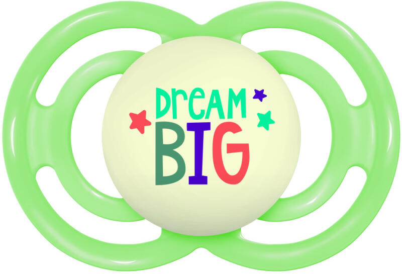 Kíváló minőségű 2db-os ortodontikus, BPA mentes, anatómiai formájú szilikon játszócumi 0-6 hónapos korig, sötétben világító karikával.