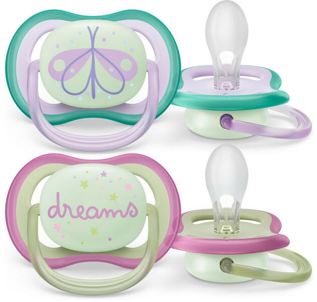 Hagyja a baba bőrét lélegezni. Extra nagy levegőnyílások a kényelmesebb megnyugtatás érdekében. A levegő kellemességével biztosít megnyugvást. A Philips Avent ultra air cumi extra nagy levegőnyílásokkal rendelkezik, így a baba bőre száraz marad. ötétben világító gombbal rendelkezik, így akkor is megtalálod, ha nincs világítás. Különféle színekben és kivitelekben