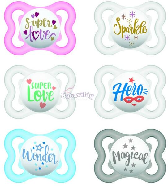 Figyelem! A minta ennél a terméknél nem választható, lányos színek elérhetőek. Ár 1 db. cumira vonatkozik. A MAM Air cumi extra nagyméretű levegőnyílásai több levegőt engednek a baba bőréhez. Ezért különösen bőrbarát. Extra levegőáramlás – különösen bőrbarát Az innovatív dizájn láttatni engedi a baba mosolyát Ortodontikus MAM SkinSoft szilikoncumi Megnyugtatj