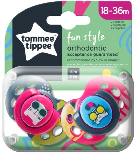 Tommee Tippee Fun játszócumi 18-36hó 2 db lány A Tommee Tippee játszó- és nyugtatócumik a legszigorúbb irányelveknek és biztonsági szabványoknak megfelelve, többféle méretben, folyamatosan megújuló mintákkal és színekkel készülnek. Szimmetrikus, ortodontikus kialakításúak, elősegítik a megfelelő fogazat és szájüreg fejlődését, a lágy szilikon cumi pedig tökéle