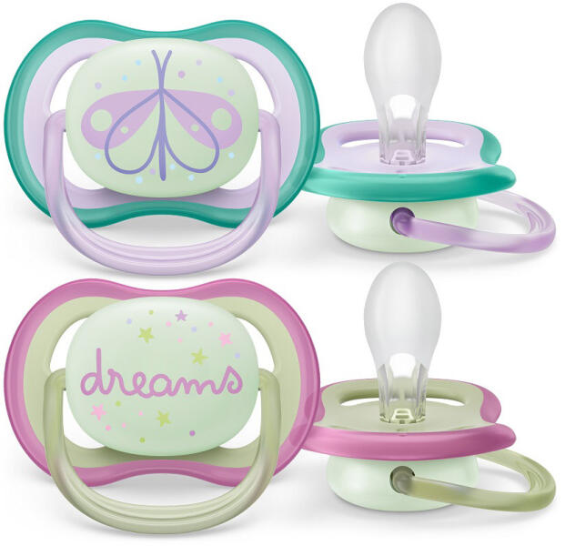 Philips AVENT játszócumi Ultra Air éjszakai 0-6hó lányos 2db Könnyű, légáteresztő cumi az érzékeny bőr számára Az extra nagy levegőnyílások lehetővé teszik, hogy a baba bőre lélegezzen *Érzékeny bababőrhöz *0-6 hó *Fogszabályozós és BPA-mentes *2 db-os *4 extra nagy levegőnyílás Az ultra air arra készült, hogy maximális levegőáramlást biztosítson, hogy babá