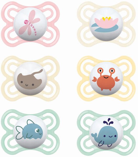 Csodaszép sötétben világítós szilikon játszó-, és nyugtatócumik a közkedvelt MAM gyártó Original kollekciójából. Mai színeknek megfelelő színvilág, édes mintákkal díszített. BPA mentes szilikon cumi, 6 hónapos kortól! Termék jellemzői: Világít a sötétben. A szellőzőlyukaknak és a dudoros belső tányéroldalnak köszönhetően kíméletes babád bőréhez. A MAM