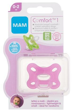 Termék részletekA MAM Comfort 1 Silicone Pacifier egy speciálisan kialakított cumi koraszülötteknek és újszülötteknek. Teljes mértékben szilikonból készült és maximális higiéniát biztosít a babája maximális kényelméért.