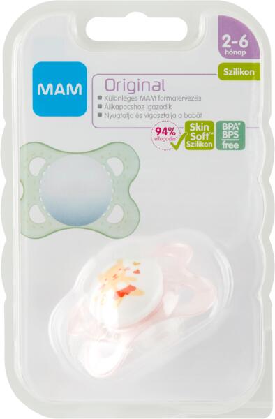A gomb világít a sötétben – könnyű megtalálni Ortodontikus Megnyugtatja és megvigasztalja a babát Szimmetrikus, vékony és állkapocsbarát teszt MAM SkinSoft szilikoncumi Praktikus sterilizáló- és szállítódobozban szállítjuk, így kényelmesen és időtakarékosan sterilizálható a mikrohullámú sütőben 1. PAJZS Hajlított forma a maximális kényelemért. A nagyméretű l
