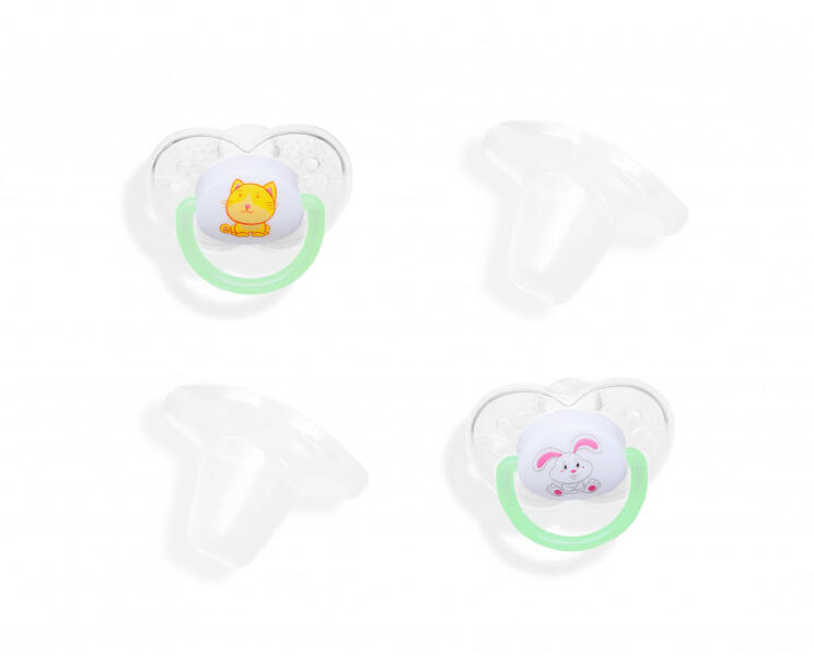 Kíváló minőségű 2db-os ortodontikus, BPA mentes, anatómiai formájú, szilikon játszócumi, védő kupakkal 6-18 hónapos korig, sötétben világító karikával. Egyedi kedves figurákkal, három különböző színekben kapható. Két különböző méretben elérhető: 1-es méret: 0-6 hónapos korig. 2-es méret: 6-18 hóapos korig Kíváló minőségű 2db-os ortodontikus, BPA mentes