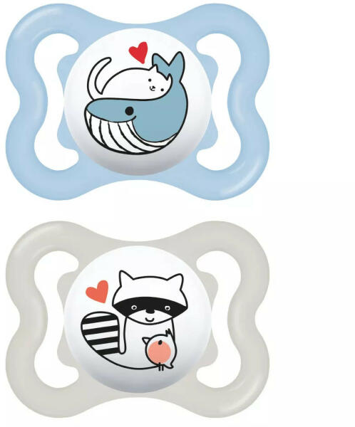MAM Air éjszakai szilikon játszócumi különösen bőrbarát a kialakításának köszönhetően. A sötétben világít, hogy könnyebben megtaláljátok éjszaka is. Extra levegőáramlás – különösen bőrbarátAz innovatív dizájn láttatni engedi a baba mosolyátOrtodontikusMAM SkinSoft szilikoncumi vagy természetes gumiból készült cumi formájában kaphatóMegnyugtatja és megvig