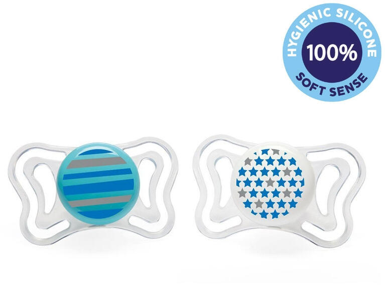 CHICCO Physio Light szilikon fiú cumi - csíkos/csillagok 2 db, 6-16 m+ A Physio Form Soother egy aktív fogszabályozó nyugtató. Egyedi formája természetes módon támogatja a baba fiziológiás légzését. Exkluzív formájú hegye segít megtalálni a megfelelő helyet a nyelvnek, így a légutakat természetes módon nyitva hagyja. Tulajdonságok:- a barázda és a lekerekített forma t