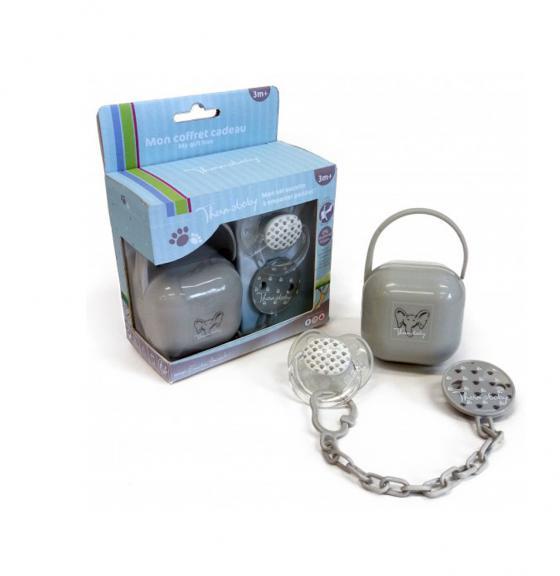 Tökéletes termék egy tökéletes bábának. A szett egy darab cumit, cumiláncot és egy dobozt tartalmaz. Maga a cumidobozban két darab cumi fér el. Praktikus hiszen gyermeke a lánc segítségével nem veszíti el, s akár a anyukája, apukája táskájára rá is lehet akasztani.
