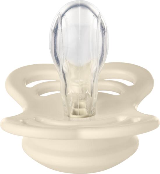 BIBS Supreme cumikrémfehér színben A BIBS Supreme cumit azoknak a babáknak tervezték, akik a lapos cumifejet szeretik. A Supreme lapos és szimmetrikus cumifeje lágyan fekszik a babák ínyére, nem nyomja azt, ezzel hozzájárul az egészséges fogak és állkapocs fejlődéséhez. A szimmetrikus formának köszönhetően a baba mindig helyesen tartja szájában a cumit. A pillangó formáj