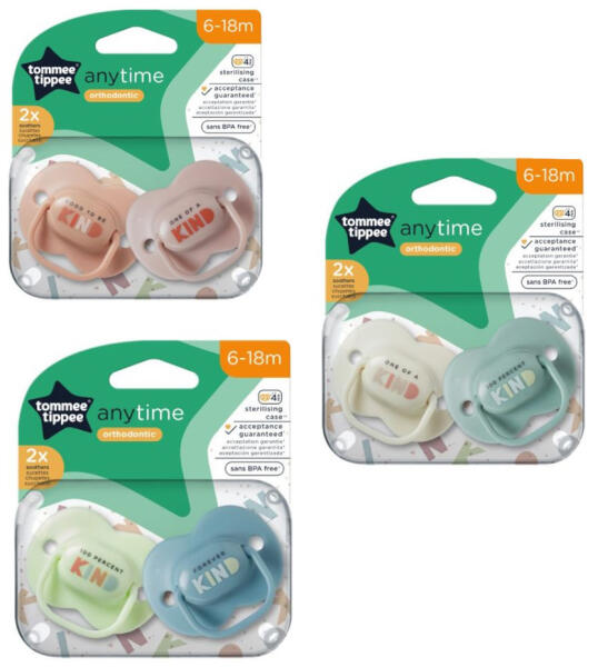 A Tommee Tippee játszó- és nyugatócumik a legszigorúbb irányelveknek és biztonsági szabványoknak megfelelve, többféle méretben, folyamatosan megújuló mintákkal és színekkel készülnek. Szimmetrikus, ortodontikus kialakításúak, elősegítik a megfelelő fogazat és szájüreg fejlődését, a lágy szilikon cumi pedig tökéletesen illeszkedik a kis szájacskákba. Az Anytime c
