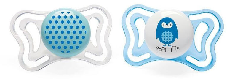 A Chicco Physio Light, a Physioforma sorozatból, egy aktív ortodontikus nyugtató cumi, könnyített, extra szellőző alappal, hogy a baba észre se vegye, hogy valami van az arcán. A levegőáramlást biztosító lyukakkal ellátott formázott korong megfelel a baba arcának kis kontúrjainak és segít csökkenteni a nedvesség felhalmozódását a száj körül. Az extra puha szopóka, amel