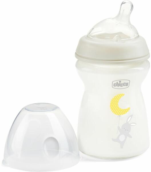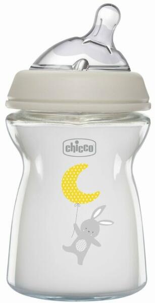 Chicco Natural Feeling Glass Neutral II, 250 ml, Cumisüvegek gyermekeknek, A Chicco Natural Feeling Glass Neutral II cumisüvegre mindig lehet számítani, ha a babát éppen nem lehetséges megszoptatni. A cumi és a cumisüveg különleges formája olyan érzést kelt a babában, mintha közvetlenül az anyukájától kapná a táplálékot. Tulajdonságok: lehetővé teszi a tápszeres hozzát